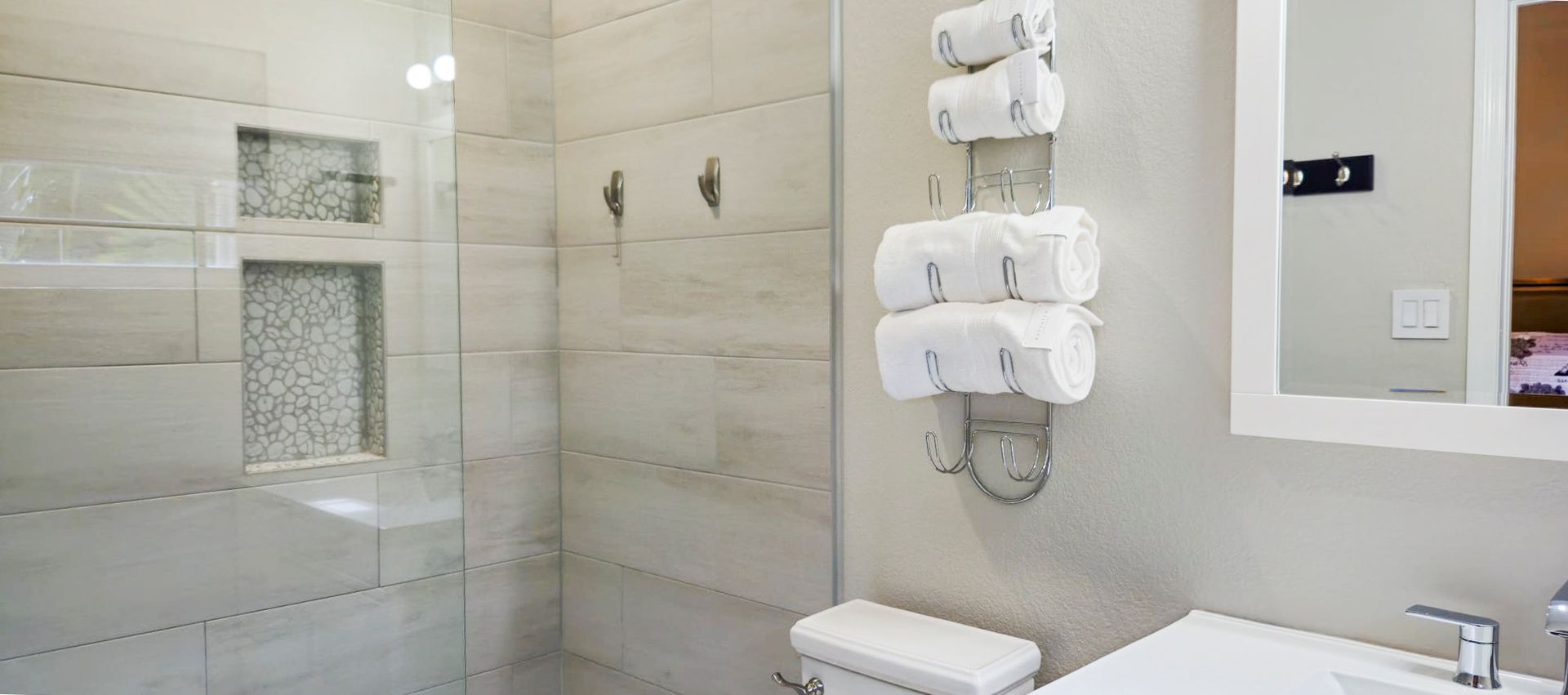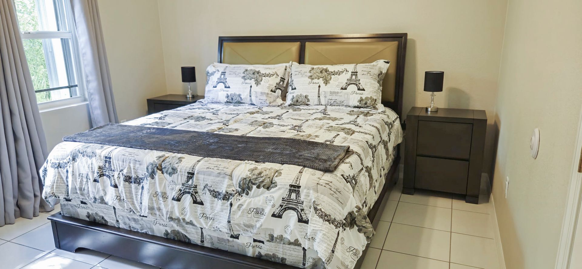 The unit is 1300 square feet, has 2.5 bathrooms, a separate laundry / storage area with a full size washer and and full sized dryer and has been freshly renovated and furnished to a high standard.