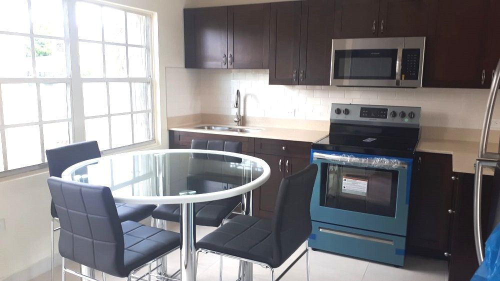 The unit comes furnished and it features stove, refrigerator, AC, washer and dryer and one parking space.